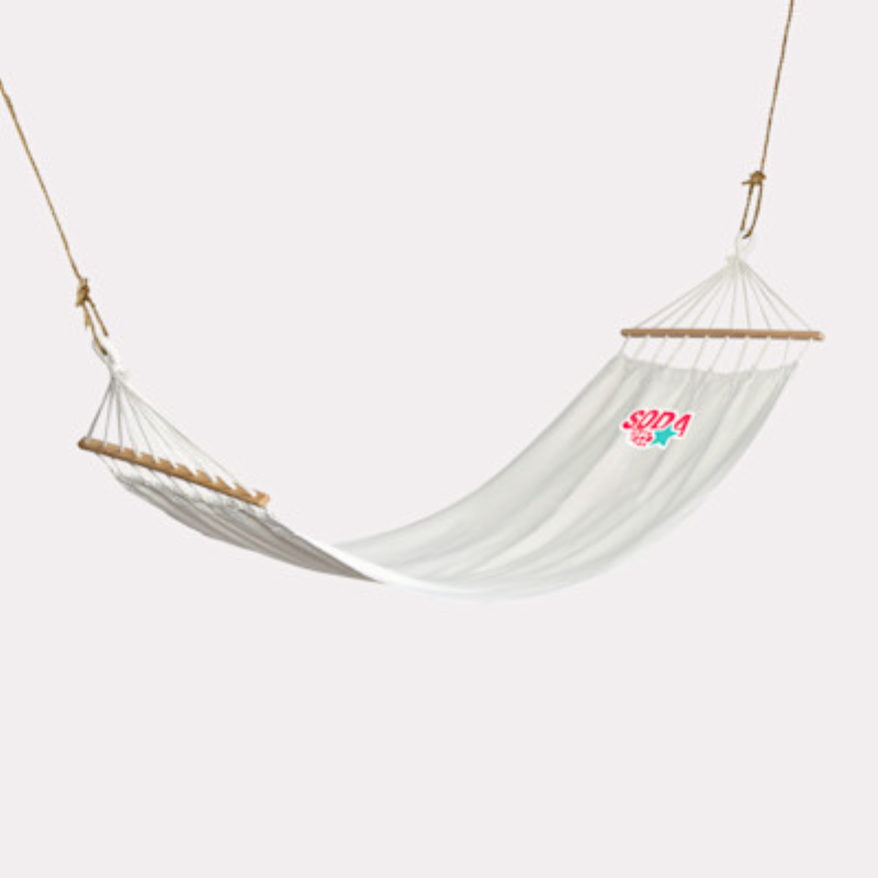 Hangmatten van het merk Soda: voorzien van opvallende bedrukking, geschikt voor elke campagne.